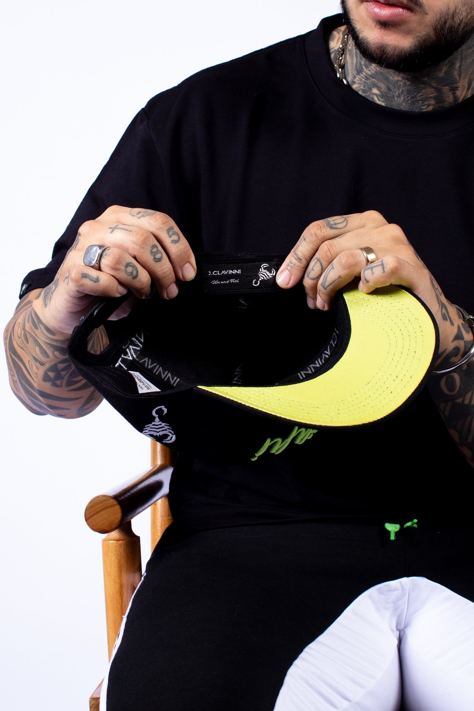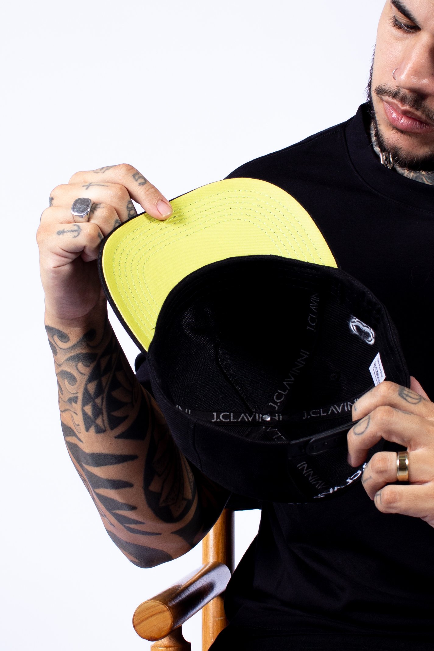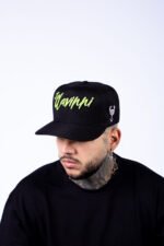 MODELAGEM: SNAPBACK – TECIDO SARJA PRETA / BORDADO / ABA SARJA VERDE