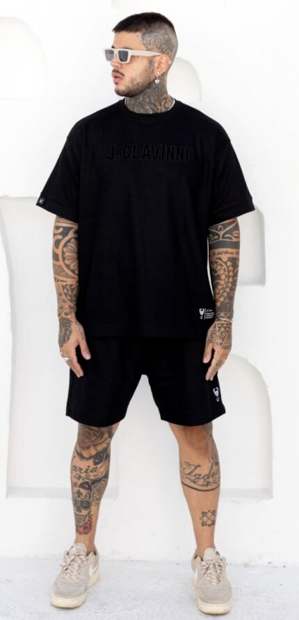 Conjunto Over com Bermuda Confeccionada em Tecido Rugby P.A , Silk em Plastisol Relevo .