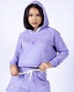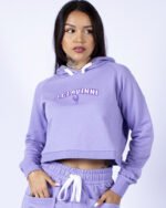 Cropped Manga Longa Confeccionada em moletinho com Capuz técnica Aplique em Vinil Bordado.
