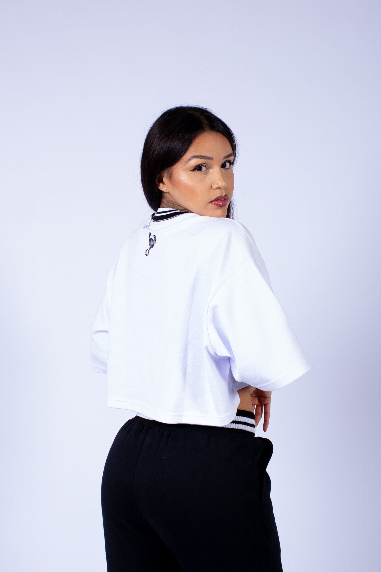 Cropped Over Confeccionado no Tecido Rugby , Técnica de Aplique  em Feltro Bordado.