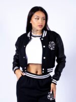 | Jaqueta Confeccionada em Tecido de Moletom com Manga em Courino, Técnica Aplique de Courino Bordado , Bordado, Punho e Barra em Ribana