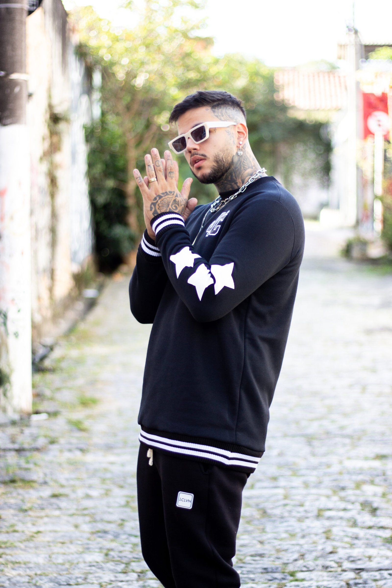 | Blusa de Manga Longa Confeccionada em Moletom , Punho e Barra em Ribana. Técnica Aplique de Courino Bordado na Parte Frontal e Silk Screen na Manga.