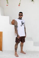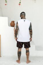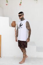 Regata Confeccionada em tecido de malha , estampa em silk Screen .